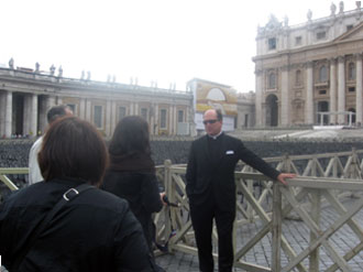 Here I am a with a few pilgrims as the empty Piazza St. Peter is set up for the big Mass for the Closing of the Year for Priests.