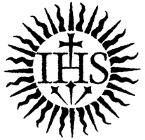The “IHS” monogram is an abbreviation or shortening of the name of Jesus in Greek to the first three letters. It is sometimes transliterated into Latin characters as IHS. The abbreviation is meant to reflect the Holiness of the Name of Jesus – something to be revered. Oftentimes this symbol is present on the large host that the priest consecrates at Mass to remind the priest that – after the Consecration – he is holding Jesus. The particular symbol above is also the symbol for the Society of Jesus founded by St Ignatius Loyola, whose feast was July 31.