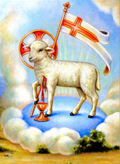 The symbol of the Agnus Dei, the “Lamb of God” is one of the most recognizable symbols of the Eucharist. It is an explicit connection between the Paschal Lamb of Passover and the Sacrifice of Christ on the cross. John the Baptist was the first to call Jesus the “Lamb of God,” and we hear the Lamb of God directed to the Eucharist at each Mass right prior to receiving Him in Holy Communion.